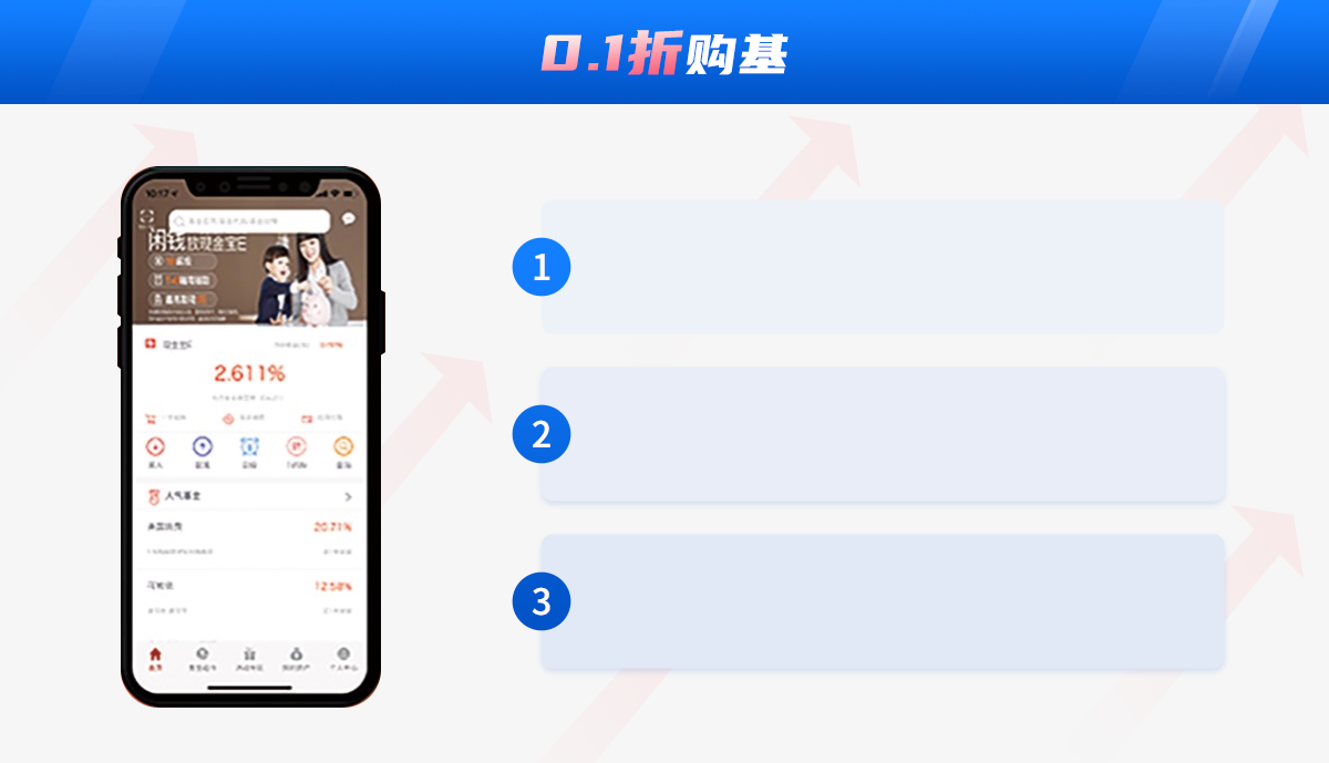 申購成功后,點擊買入"熱門"基金,支付方式選擇"現金寶E",即可立享0.1折優惠。